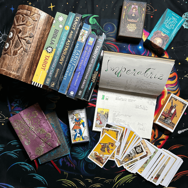 My mom was always super spiritualized and I had a taste of it when she started to learn about Reiki. Later on she got into Tarot and I joined her. We had Tarot classes with Fernanda Beppler, she is pretty famous in Brazil among the Tarot community. I continued my studies and I had advanced Tarot classes with the amazing Camila Câmara. I read many books about Tarot from different authors. My favorite ones are Rachel Pollack and Thereza Reed.